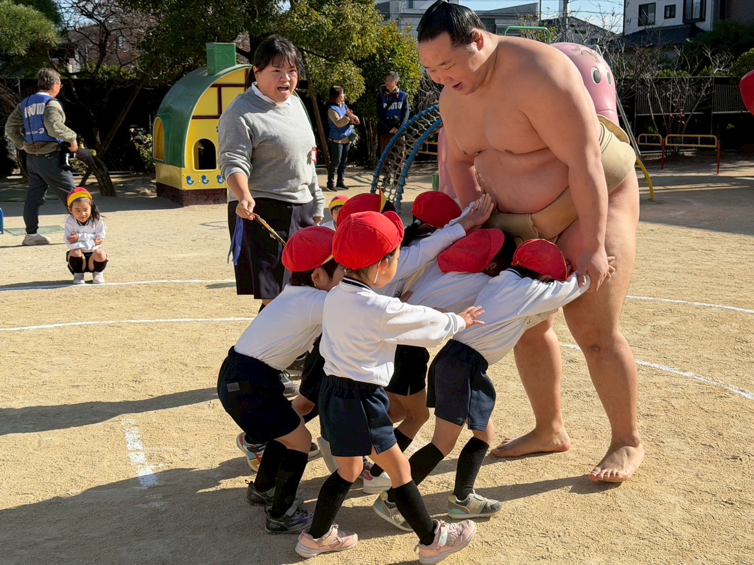 力士の方の大きさに驚くこども達でした!
