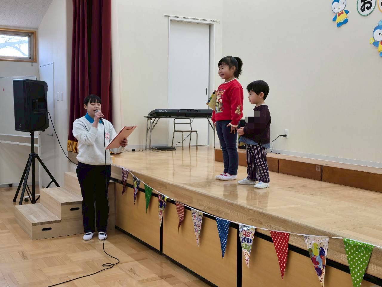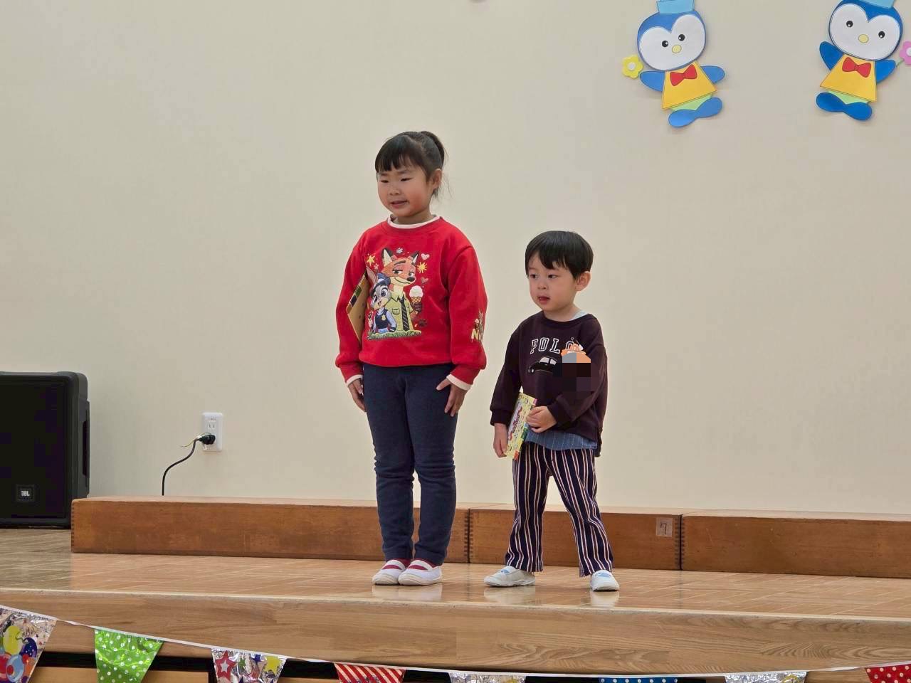 今月は2名のお友達でしたが、少し緊張しながらも堂々と前に立つ姿が見られました。