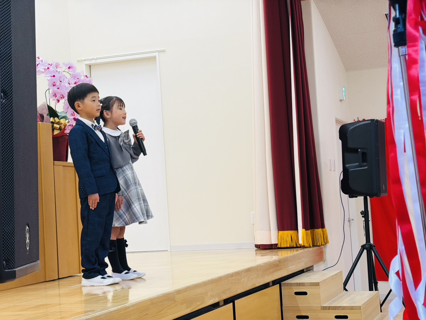 一人一人が堂々と証書を受け取り、保育園生活の集大成の姿を見せる事が出来ました。門出の言葉では、一言一言噛み締めながら話す子ども達の姿が印象的でしたよ!歌唱では気持ちのこもった歌声に保護者の方も感動している様子が見られました。